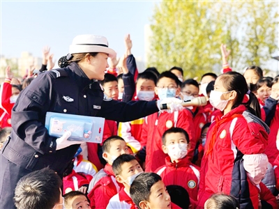 11月15日,蒲城县公安局交通管理大队民警走进辖区南街小学,通过学习交通安全知识、观看事故车辆残骸等形式,向学生们讲解了“一盔一带”的重要性。