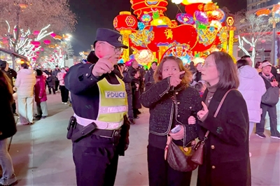 春节期间,根据西安市公安局统一安排,公安鄠邑分局每天抽调120名民警在大唐不夜城游客密集区域维护秩序,确保景区秩序稳定、游客出行安全。