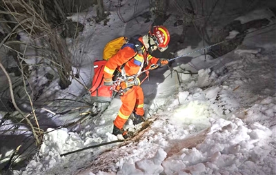 本报讯(孙波)3月8日17时43分,西安消防接到报警,称一大学生登山时不慎坠落山崖,急需救援。救援人员到达现场后了解到,4名大学生在爬山过程中,一男生不慎坠落山崖,坠落地点距山下较远,且山上积雪很厚、气温寒冷、道路崎岖。救援人员立即制定救援方案,同时等待当地向导带路上山。19时20分许,6名消防救援人员与当地向导开始登山。22时50分,救援人员到达男生坠崖地点,并利用绳索展开搜救工作。23时07分,一名救援人员利用绳索下降至100米处未发现被困男生,随后另一名救援人员也下降协同搜救。经不懈努力,救援人员在绳索下降至250米左右处发现被困男生。经检查发现,该男生面部有擦伤,身体无法动弹,有轻度失温症状。救援人员迅速对其实施保温措施,安抚情绪,并在其他救援人员的帮助下对男生进行转移。
