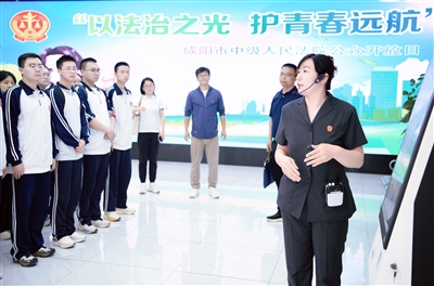 5月14日,咸阳市中级人民法院开展“以法治之光 护青春远航”公众开放日活动,邀请咸阳市实验中学师生走进法院,近距离了解法院工作流程、切身感受司法审判工作的神圣与庄严。法官还指导学生们开展了一场以“反校园欺凌”为主题的模拟法庭活动。