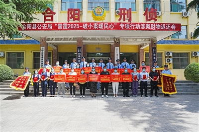 5月16日上午,合阳县公安局召开“雷霆2025-破小案暖民心”专项行动涉案财物返还会,累计返还群众被盗香烟、白酒、手机、电动车及被骗资金等共计价值221.08万元。受害群众代表、城区各银行网点负责人、刑侦大队全体民辅警、相关派出所负责同志、办案民警等参加了会议。