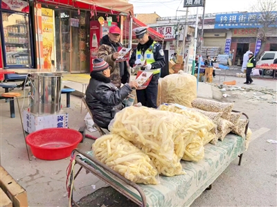 1月6日,渭南市蒲城县公安局交通管理大队民警走进龙池镇晋城村,开展“千村宣教”交通安全宣传活动。本报记者 张建锋 通讯员 董娇 摄