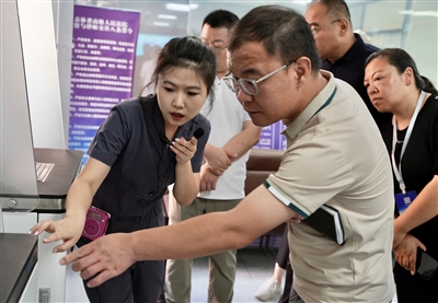 8月27日,公主岭环城法庭工作人员演示查询设备。