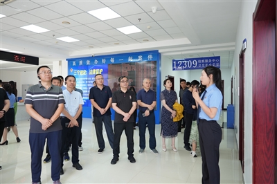 8月27日,敦化市人民检察院干警向采访团介绍“检护民生”专项行动开展情况。