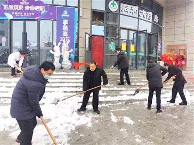 3月4日,春寒料峭,雪花纷飞。洛南县人民法院积极响应学习雷锋精神的号召,组织干警们利用休息时间,主动到附近街区清扫积雪。 通讯员 陈宁 本报记者 李煜 摄 |