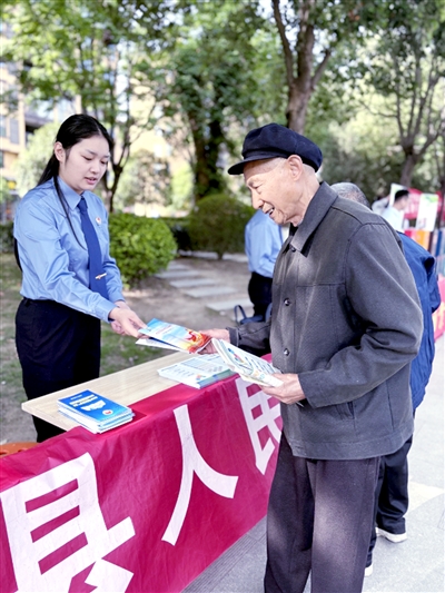 4月25日,汉中市城固县人民检察院联合县市场监督管理局、县公安局、县司法局等多家单位在乐城公园开展“知识产权与人工智能”主题宣传活动。图为检察干警为群众发放知识产权保护相关法律法规宣传册。