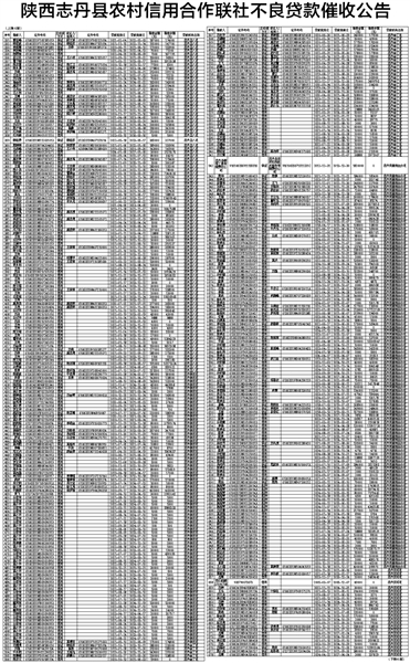 陕西志丹县农村信用合作联社不良贷款催收公告