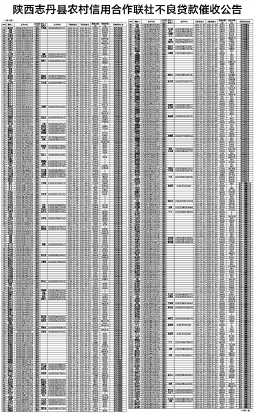 陕西志丹县农村信用合作联社不良贷款催收公告