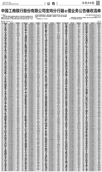 中国工商银行股份有限公司宝鸡分行融e借业务公告催收清单